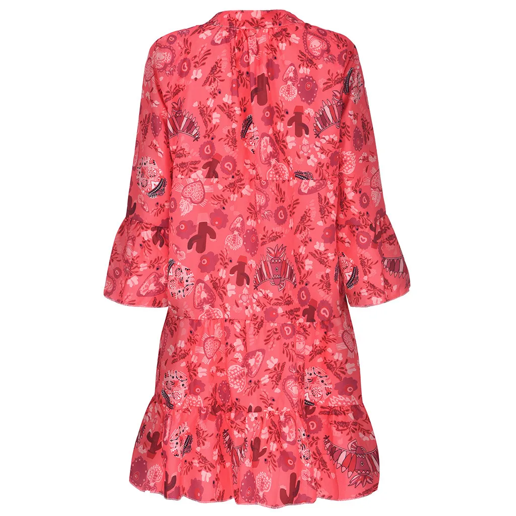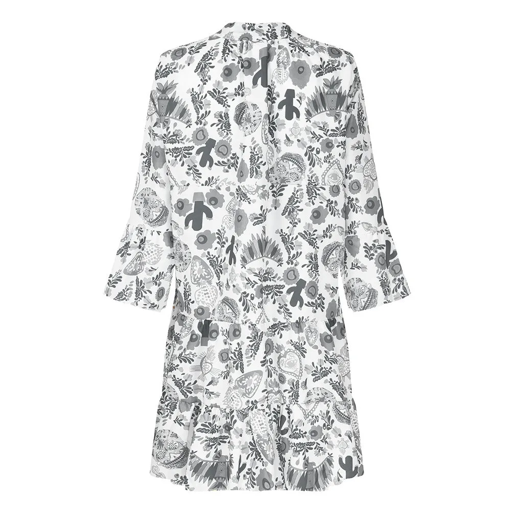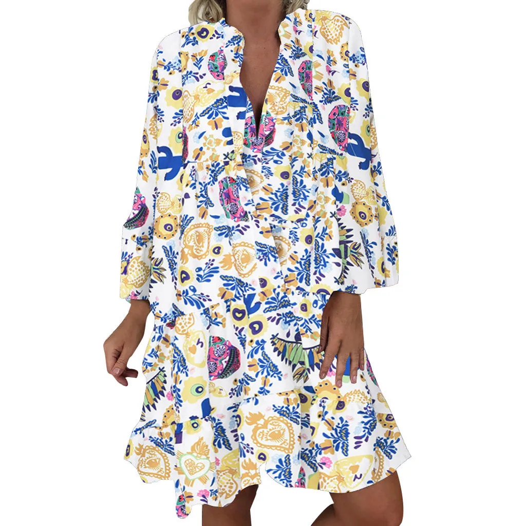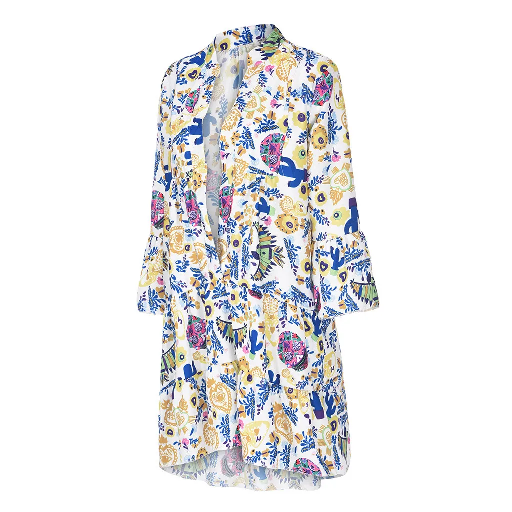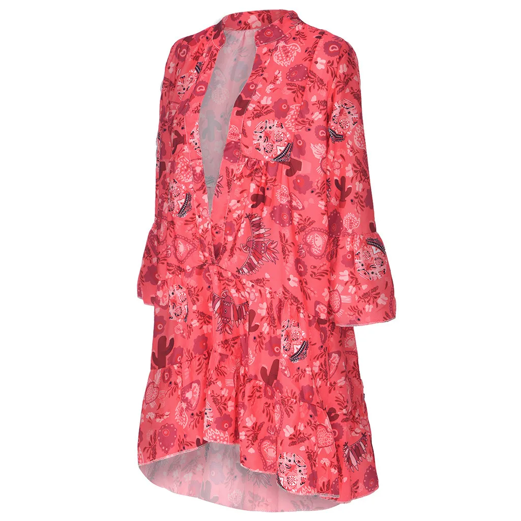Женское свободное мини-платье с принтом и длинным рукавом, v-образным вырезом и пуговицами размера плюс