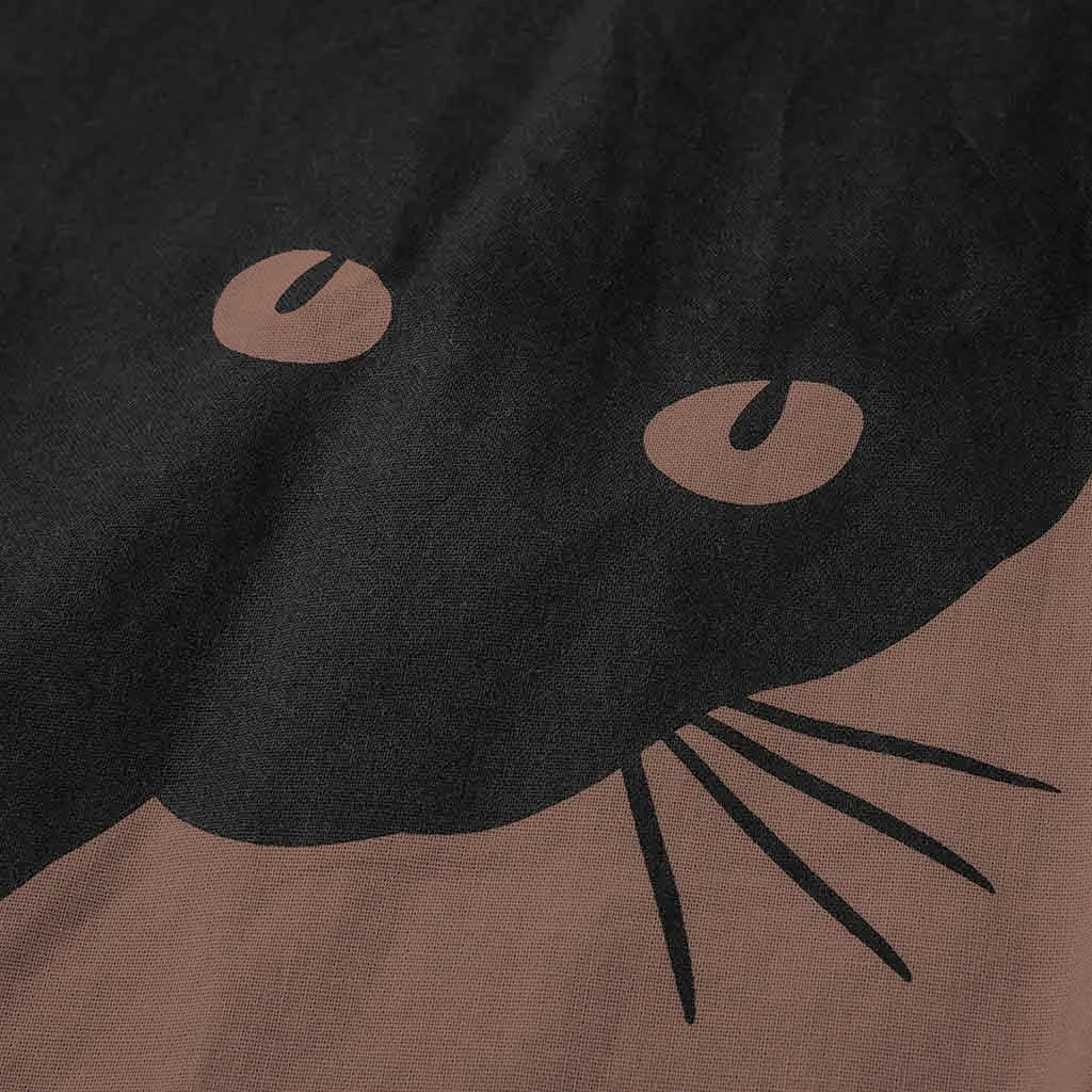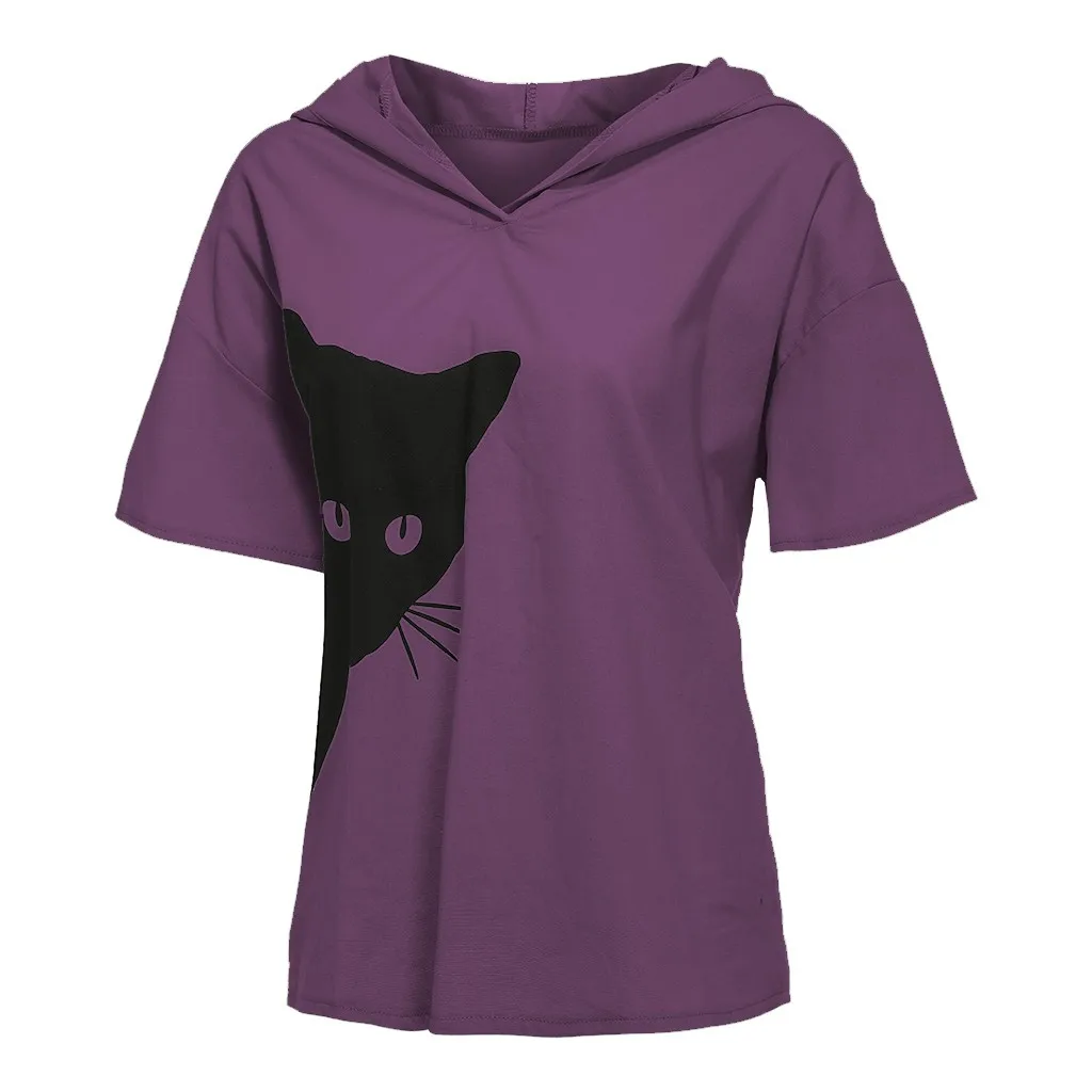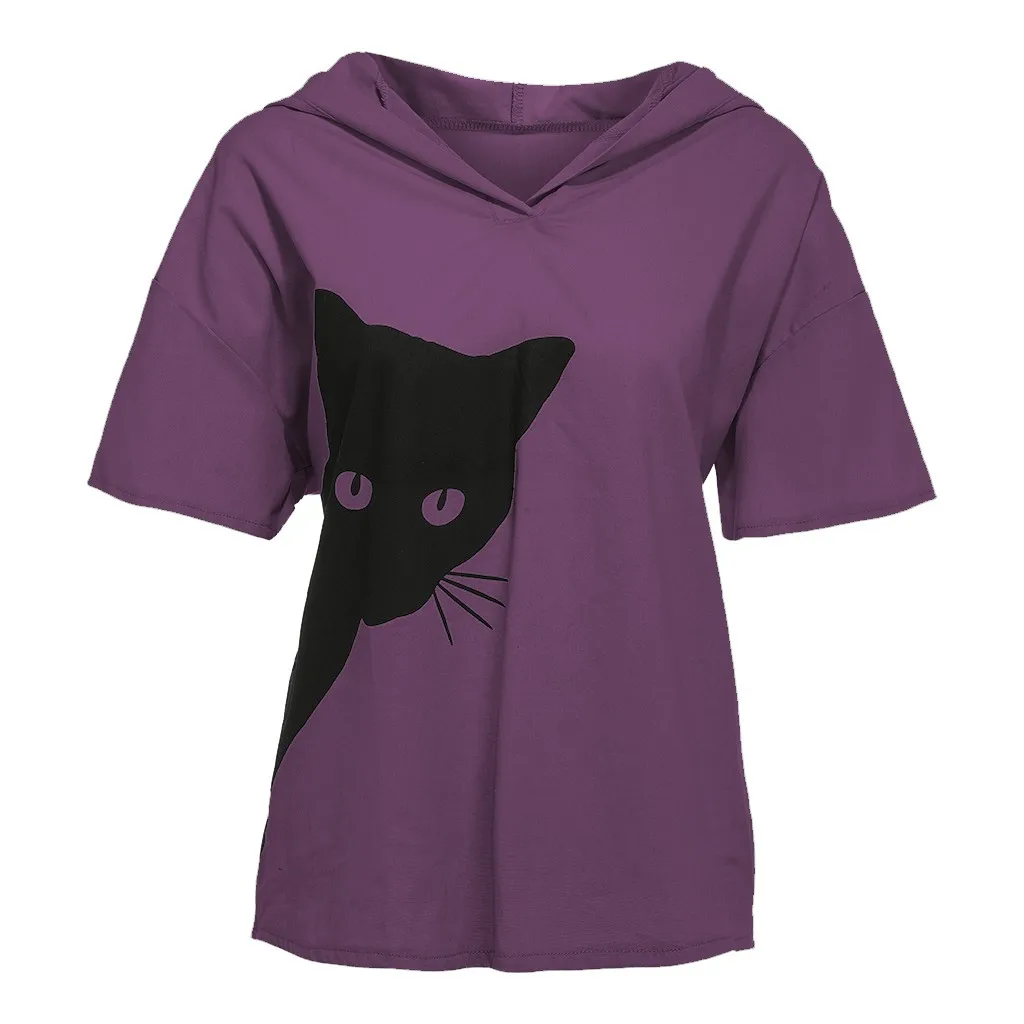 Модные женские свободные повседневные хлопковые и льняные топы с принтом головы кота, футболка