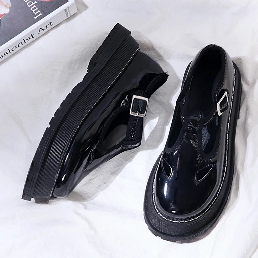 Новинка; Модные Женские однотонные туфли на танкетке с пряжкой; Вечерние туфли на платформе с круглым носком; Повседневная обувь