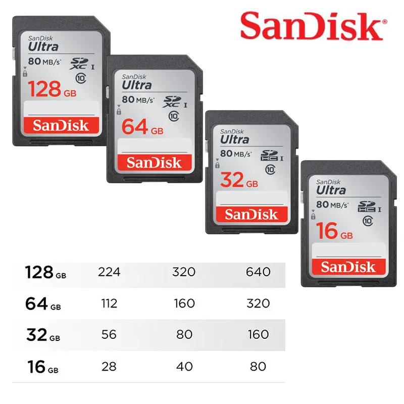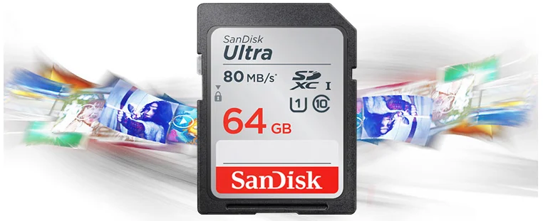 Двойной Флеш-накопитель SanDisk Ultra SDXC и SDHC UHS-I карты памяти поставляются с емкостью хранения данных до 128 GB2, позволяет вам делать много фотографий и видео, прежде чем менять карту или переносить файлы на ваш компьютер.