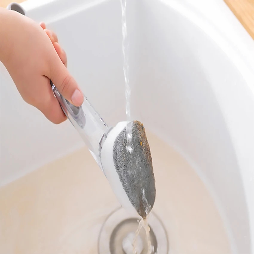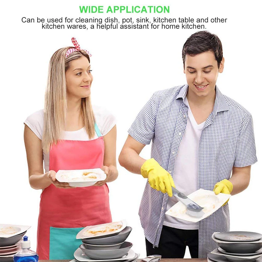 3.Удобный захват:Эргономичная Нескользящая ручка удобно лежит в руке даже при мокрой и мыльной стирке. Ручка удваивается в качестве мыла, который легко наполняется любым мылом для посуды.