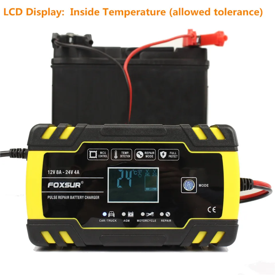 • Управление микропроцессором (ЦП). • 3 этап автоматический индикация во время зарядки: • Это полностью автоматическое зарядное устройство с 3 этапами зарядки. • Автоматическая зарядка защищает аккумулятор от перезарядки. Таким образом, вы можете оставить зарядное устройство, подключенное к батарее на неопределенный срок. • 3 зарядные устройства подходят для большинства типов аккумуляторов, включая кальций, гель и AGM, мокрый батарей. Они также могут помочь восстановить сливные и сульфированные батареи. • Типы батарей: большинство типов свинцово-кислотных батарей, включая кальций, гель и AGM, влажные, EFB и т. Д. • Технология переключения: Да • Защита полярности: Да • Выходная короткая Защита: да • Защита без подключения аккумулятора: Да • Защита от перенапряжения: Да • Защита от перегрева: Да • Вентилятор охлаждения: вентилятор • Входное напряжение: 100-240 В переменного тока, 50-60 Гц • Номинальная мощность: 12V 8A 24V 4A • Минимальная Начальное напряжение: 2,0 V • Диапазон батарей: 6-150 Ач • Термозащита: 65'C +/-5'C • Эффективность: приложение. 85%. • Стандарты соответствия: CB,CE, IEC60335, EN61000, EN55014 • Размеры (L×W×H): 170 × 98 × 58 мм • Вес: 650 г