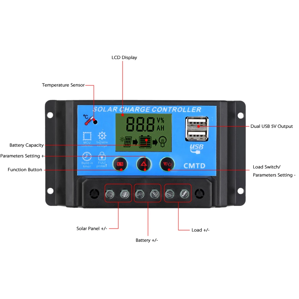 1. Порядок подключения: сначала Подключите аккумулятор для хранения, затем подключите солнечную панель; Порядок Отключения: сначала отсоедините солнечную панель, затем Аккумулятор для хранения; В противном случае это приведет к повреждению контроллера.