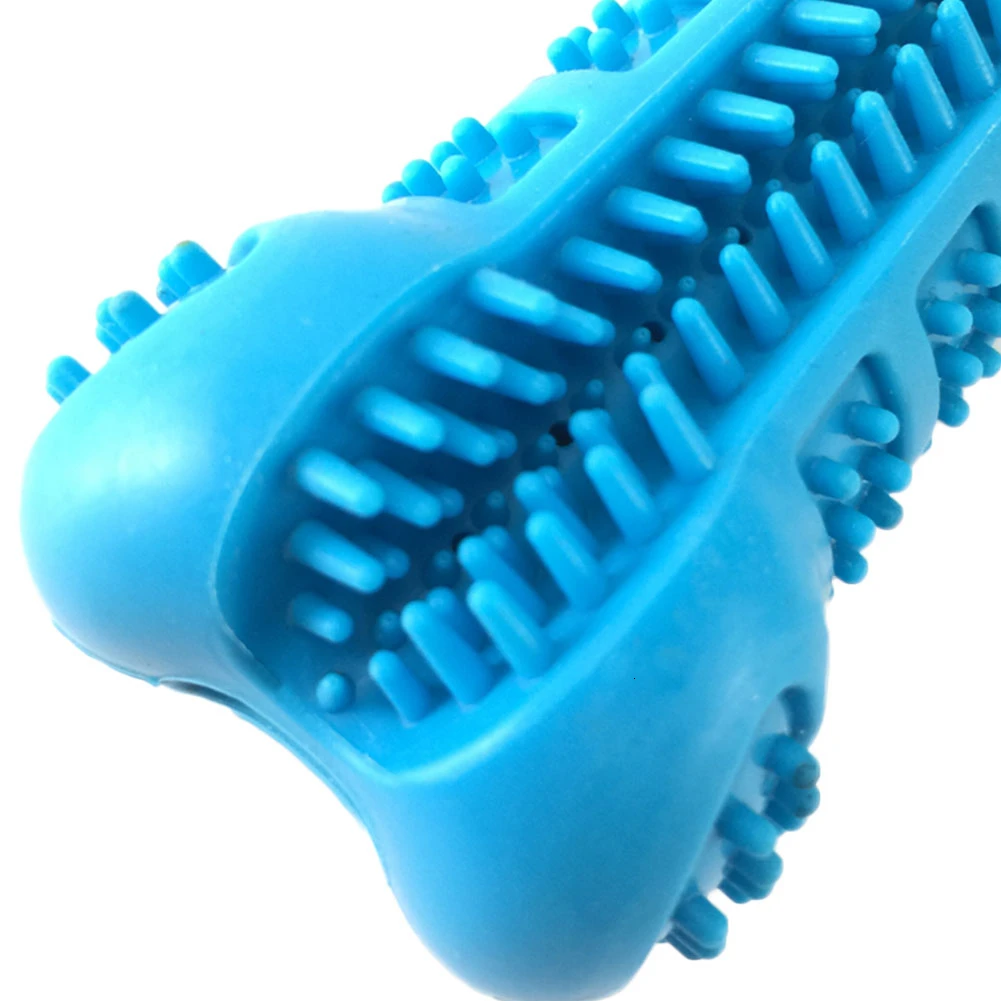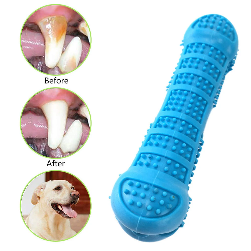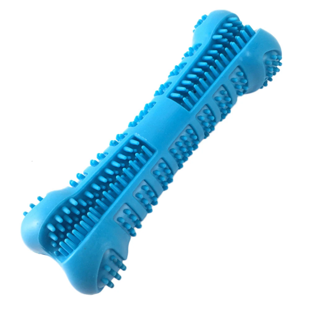 Собака чистка зубов палка имеет 2-сторонняя Щетинная кисть с подкладкой пазов и зубной пасты резервуар, предотвращает зубного налета и зубного камня