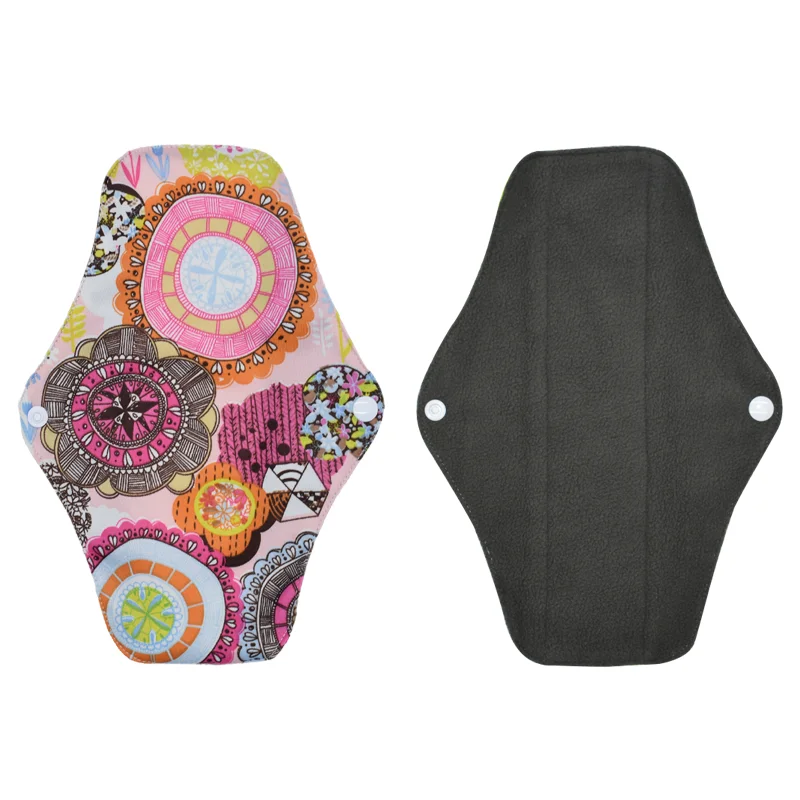 Внешний слой из мягкой ткани более удобен для вашей кожи, чем одноразовые прокладки. Средний слой принимает микрофибра, чтобы сделать эти многоразовые прокладки супер абсорбирующие. Внутренний слой бамбукового древесного угля поможет замочить жидкость и нейтрализовать запахи.