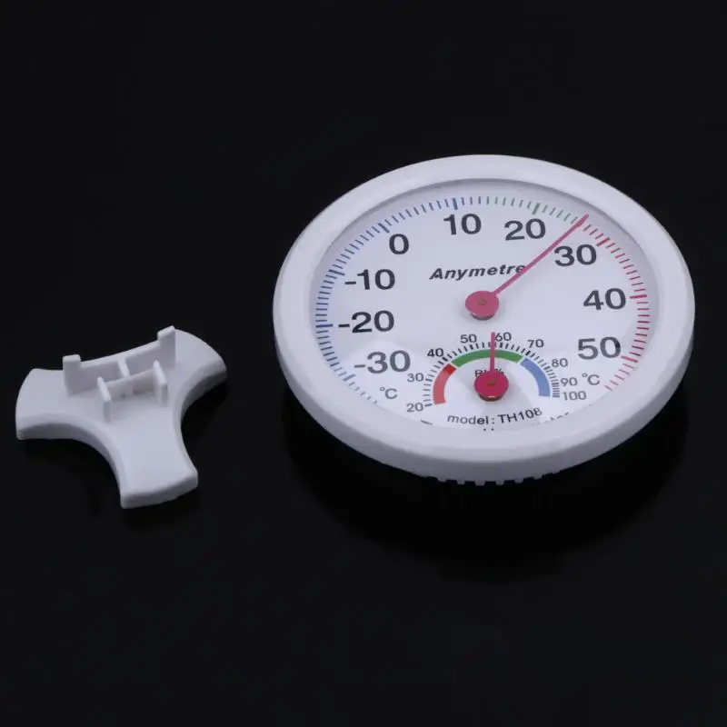100% абсолютно новый и высококачественный современный термометр и гигрометр с тонким и четким циферблатом с простой шкала считывания. Отверстие Hooking Доступно с регулируемым портом, широко используемым для измерения температуры и влажности в доме, школе, офисе, гостинице, фабрике, подсобном помещении и т. д. Диапазон измерения температуры: -30C до 50 C диапазон измерения влажности: 20 ~ 100% RH Размеры: 7,5 см (диаметр) * 2 см (H)(приблизительно)