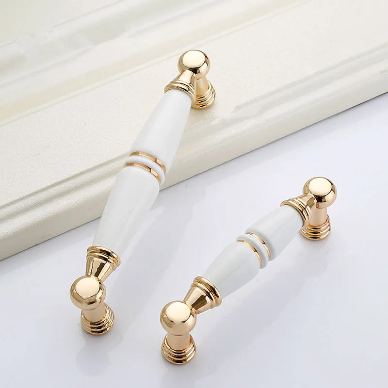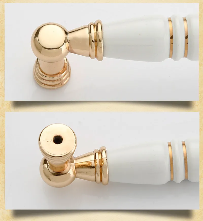 Материал: цинковый сплав/керамика Отделка: белый/GP Расстояние отверстия: 96 мм/128 мм Размер: Пожалуйста, проверьте параметры Посылка включает в себя: 1 х ручка и Подходящие винты Обратите внимание: Если вам нужны специальные винты длины, пожалуйста, оставьте сообщение при оплате заказа.Для дорогих клиентов: