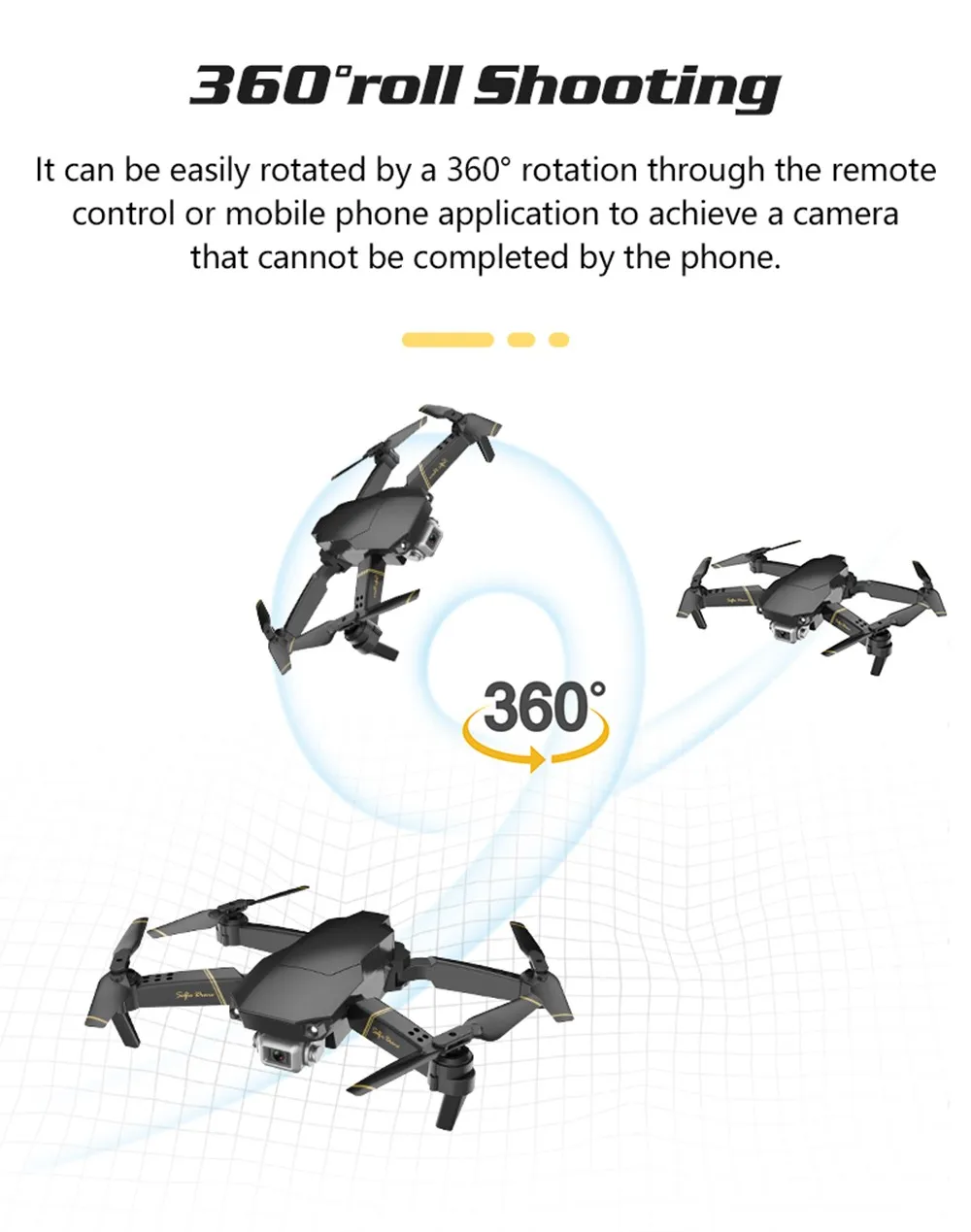 -Функции: передача WiFi карты, фиксированная высота, Безголовый режим, вперед и назад, левая и правая сторона летают, восходящий и нисходящий, левый и правый рулевое управление, тонкая настройка направления, одно нажатие, одно касание посадки, опрокидывание, быстрое и медленное преобразование передач, горизонтальная коррекция, безголовая коррекция режима, Внешний 8 Пуск/остановка, Аварийная остановка, защита от застревания 2 - 3 секунды, камера мобильного телефона и видео, экран мобильного телефона вперед и назад переключение, гравитационное зондирование, функция VR