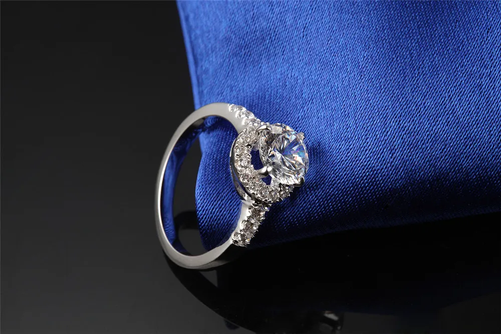 1: однотонное Белое золото 14 к 2: никогда не делайте пальцы зелеными 3: никогда не выцветает и не тускнеет 4: бриллиант в каратах Вес: 2 карата центральный бриллиант = 8,0 мм круглая огранка 5: Цвет бриллианта: F цвет 6 четкость: VS1