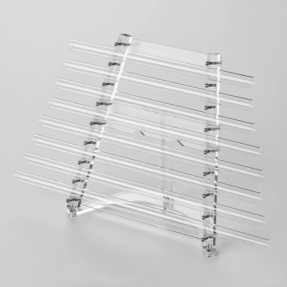 С акриловой основой и подставкой для размещения арфы на рабочем столе или полу для удобной игры.