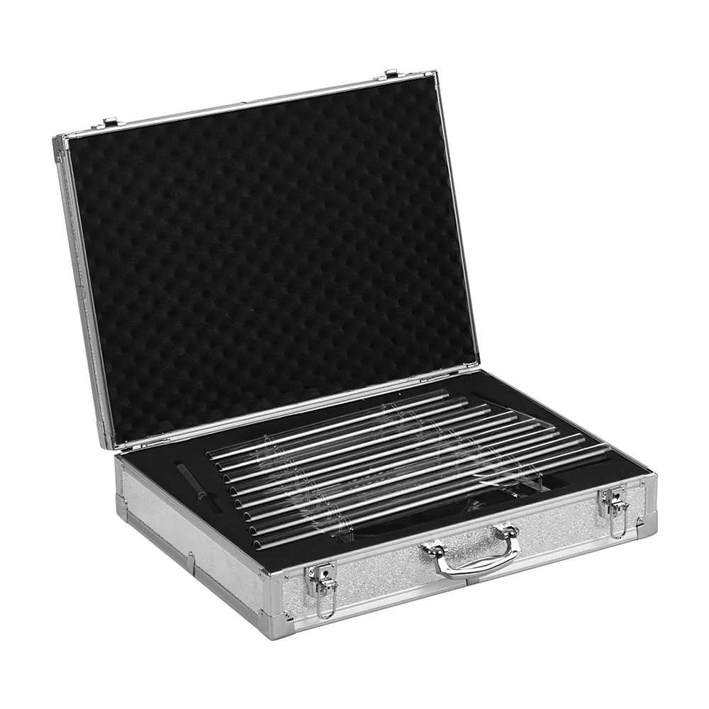 Включая Алюминиевый футляр для переноски с амортизирующей пеной внутри для хранения и защиты хрустальной поющей арфы.