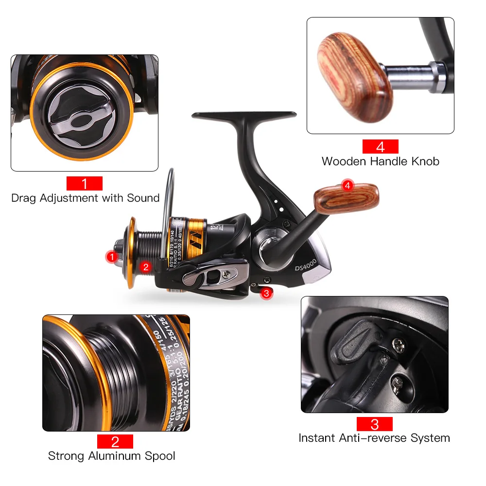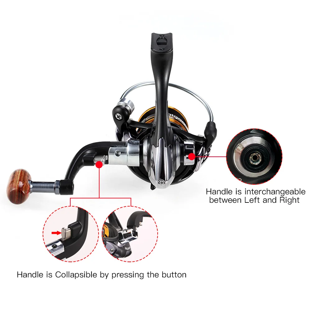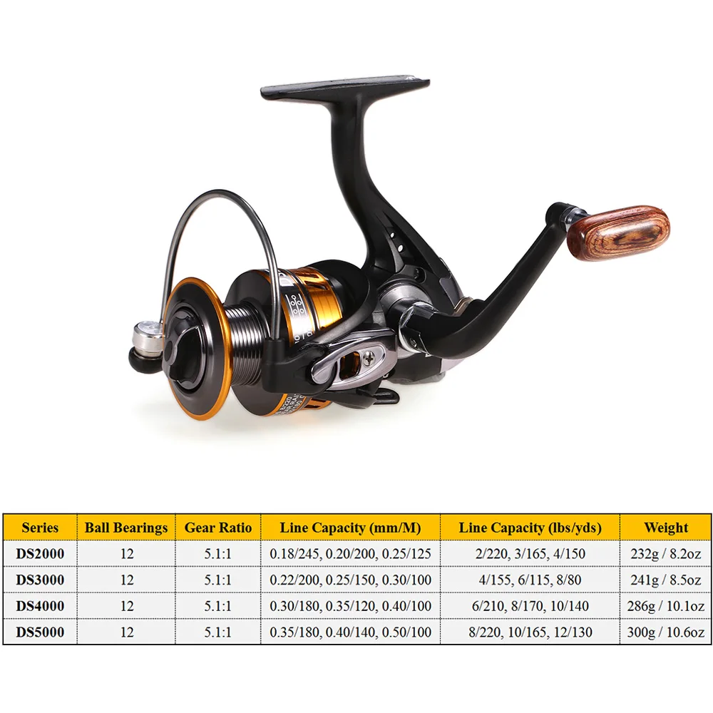 Эта Рыболовная катушка, украшенное мозаикой из драгоценных камней, 12 шарикоподшипник, 5,1: 1 Передаточное отношение, котор подвергли механической обработке катушка из алюминиевого сплава, обработанного на станке, сменная ручка, деревянная ручка, светильник вес и ультра-тонкий корпус, делает его мощным снасти для рыбалки.