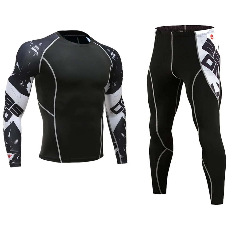 2 шт./компл. Для мужчин спортивный костюм с принтом рубашки с коротким рукавом тренировки Рашгард колготки