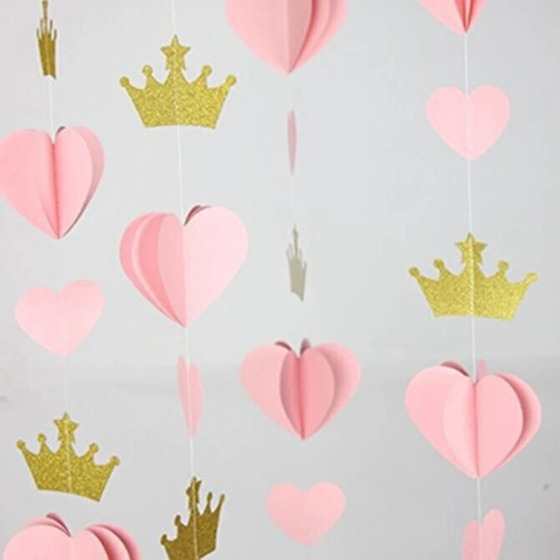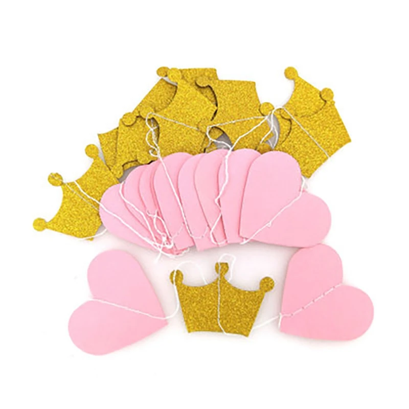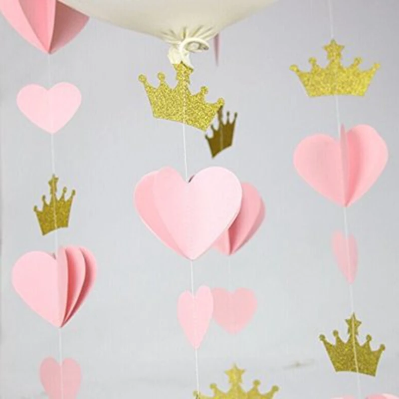 3D Золотой розовый сердце Корона бумага Гарланд принцесса флаги с днем рождения воздушный шар хвост Девочка Душ украшения бумага Гарланд