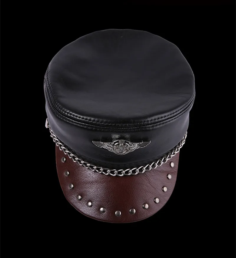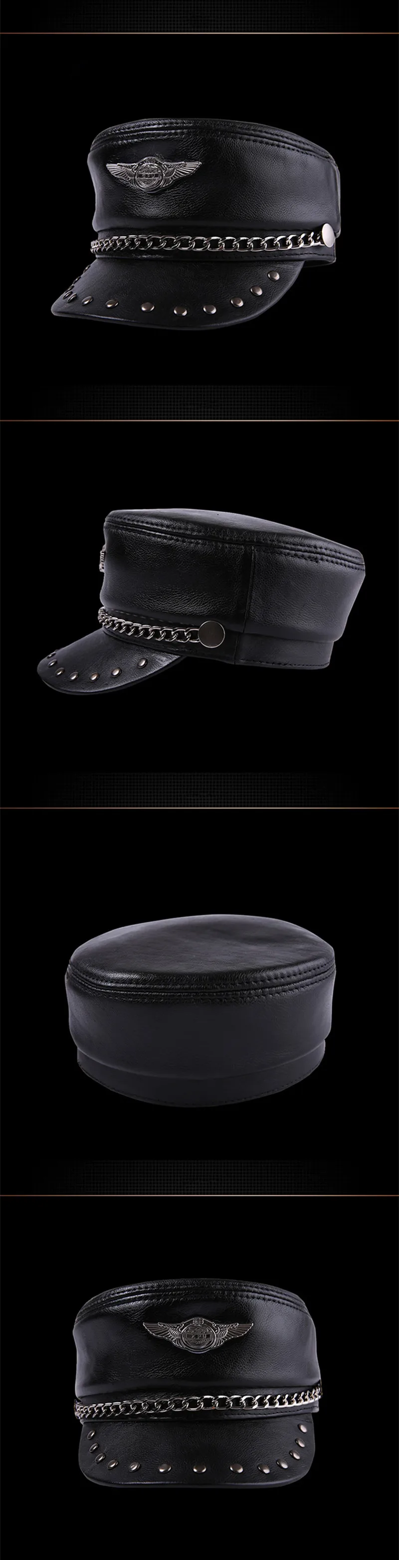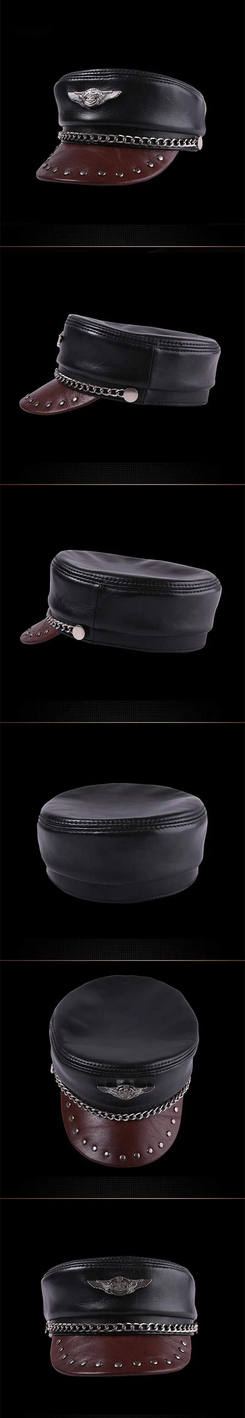 Модная военная шапка унисекс из натуральной кожи Осенние матросские шапки для