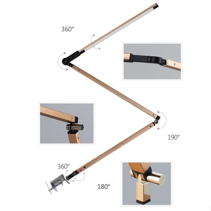 Регулируемая поворотная лампа-Поворотная головка лампы на 300 градусов, гибкий складной металлический корпус с 3 шарнирами 40 дюймов и вращающееся основание позволяют легко освещать ваш рабочий стол, компьютерный монитор и книги в ночное время.