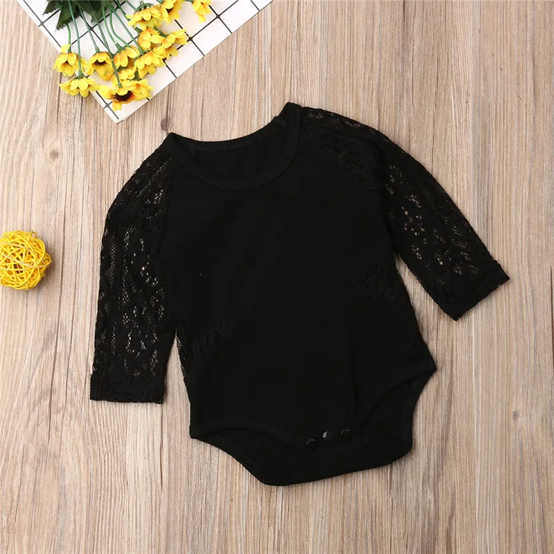 Кружевной комбинезон с длинными рукавами для маленьких девочек; Сезон весна-осень; Однотонный белый/черный комбинезон; Осенняя одежда; Кружевной комбинезон для маленьких девочек!