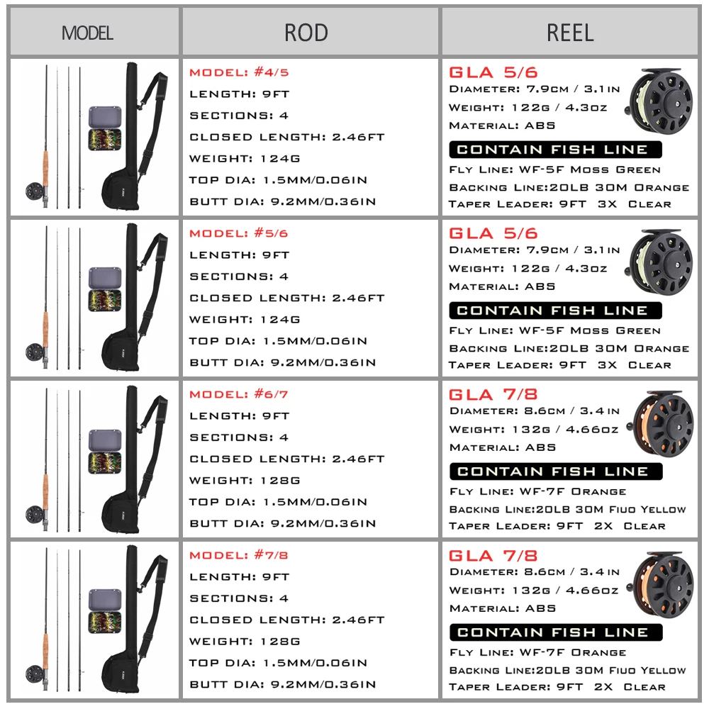 Этот комплект включает в себя удочку, катушку с линией, 20 мух, сумку для хранения. Он предназначен для новых fly fisher, чтобы начать работу сразу.