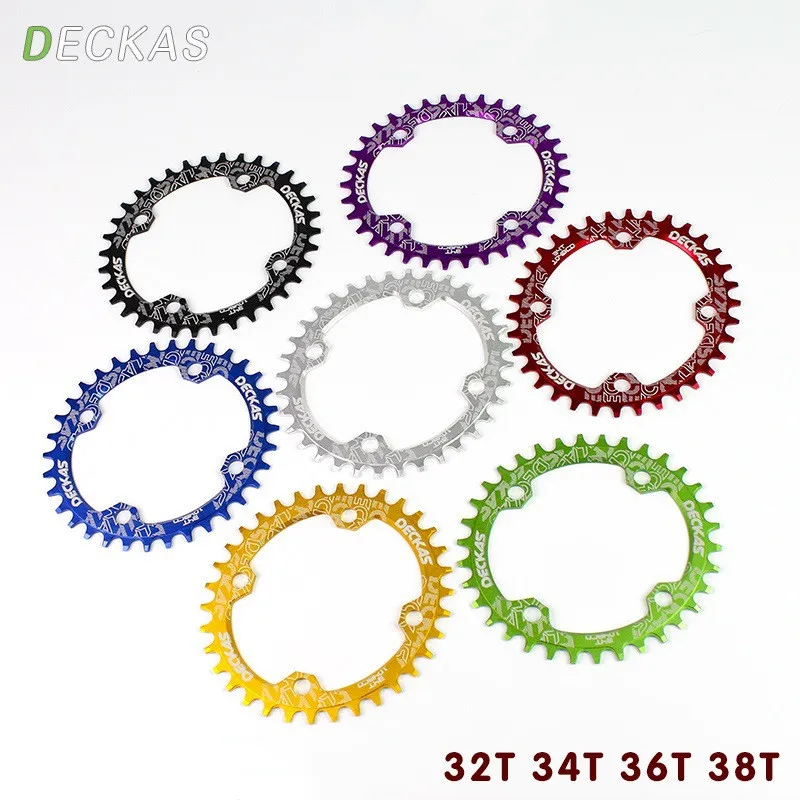 Производитель: DECKAS Тип диска: Овальный Цвет: черный, красный, зеленый, фиолетовый, серебристый, синий, золотой Спецификация: 32T 34T 36T 38T Применимый Кривошип: 104BCD