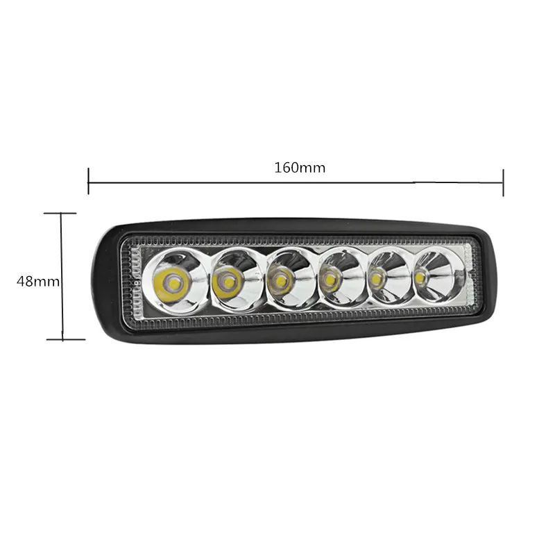 1. Мощность: 18 Вт 2. Размер: 160 ширина * 48 высота * 45 толщина 3. Световой угол: концентрирование 30 ° 4. Светильник Тип лампы: 3 Вт/6 светильник бусины, 5. Номинальное напряжение: 12 В постоянного тока 6. Цветовая температура: белый светильник 6500K 7. Срок службы: 50000 часов 8. Водонепроницаемость: IP67