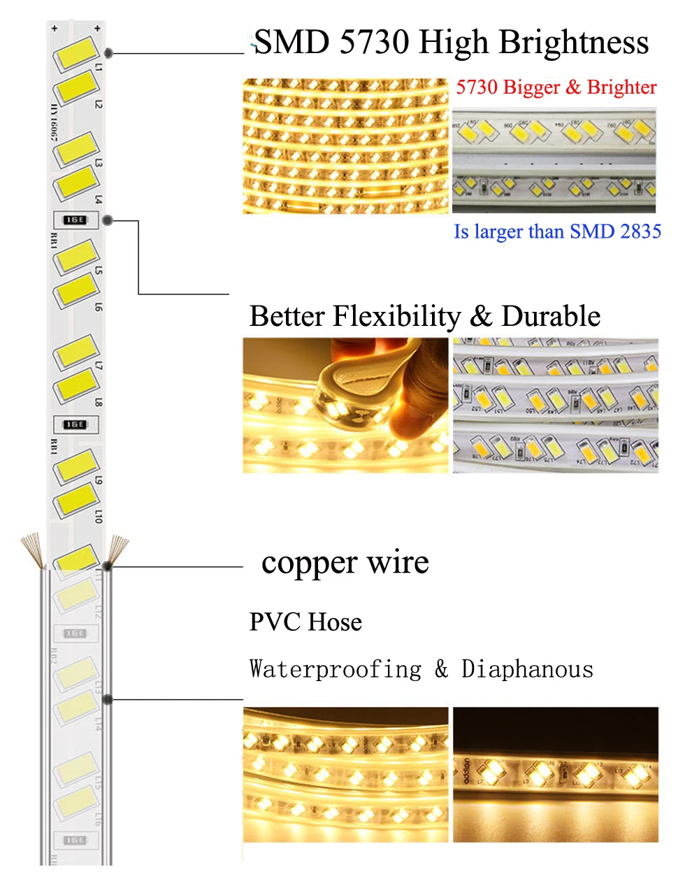 4.Супер яркий 5730 SMD светодиодный, высокая интенсивность