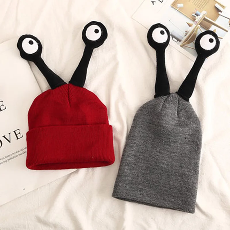 Зимние шапки для детей, теплая шапка с глазами насекомого, вязаные шапки-бини для девочек, милые вязаные шапки с черепами для мальчиков, шапка с героями мультфильмов