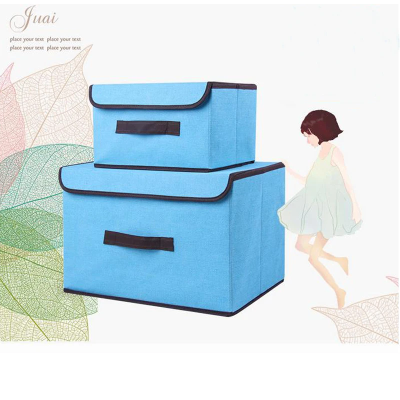 Коробка для хранения из хлопка и льна с крышкой, 2 размера, носки для одежды, детские игрушки, закуски, разное, органайзер, шкаф, коробка для хранения, корзина