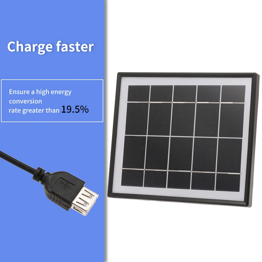 【Широкая Совместимость 】 вы можете использовать это зарядное устройство на солнечной батарее для любых электронных устройств 5 В, таких как аккумуляторы, мобильные телефоны, планшеты, портативный вентилятор, аварийный светильник и многое другое.