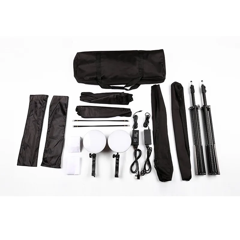Этот набор включает в себя два светодиодный светильник, два софтбокса, два легких стендов и одну сумку для переноски. Комплект освещения подходит для различных видов фотосъемки, очень подходит для студийного использования.