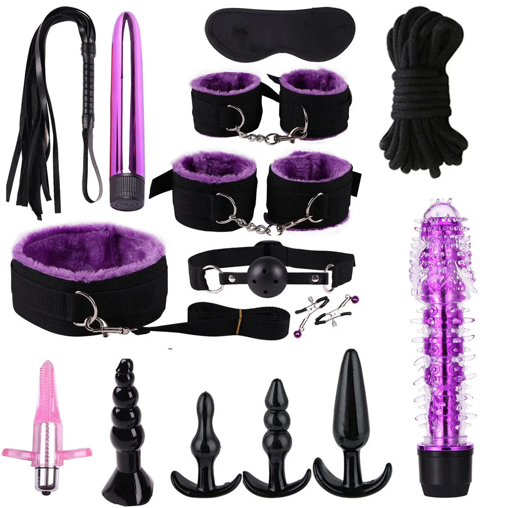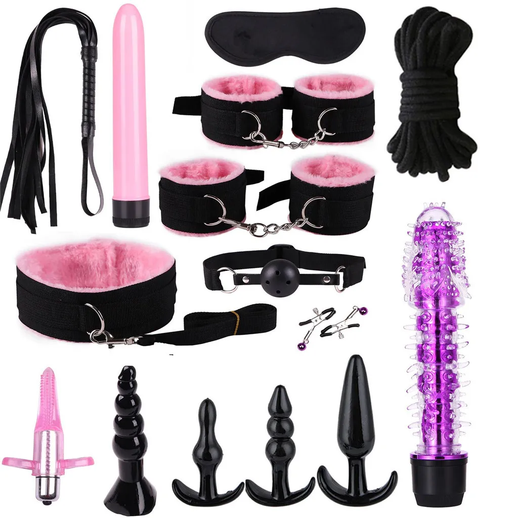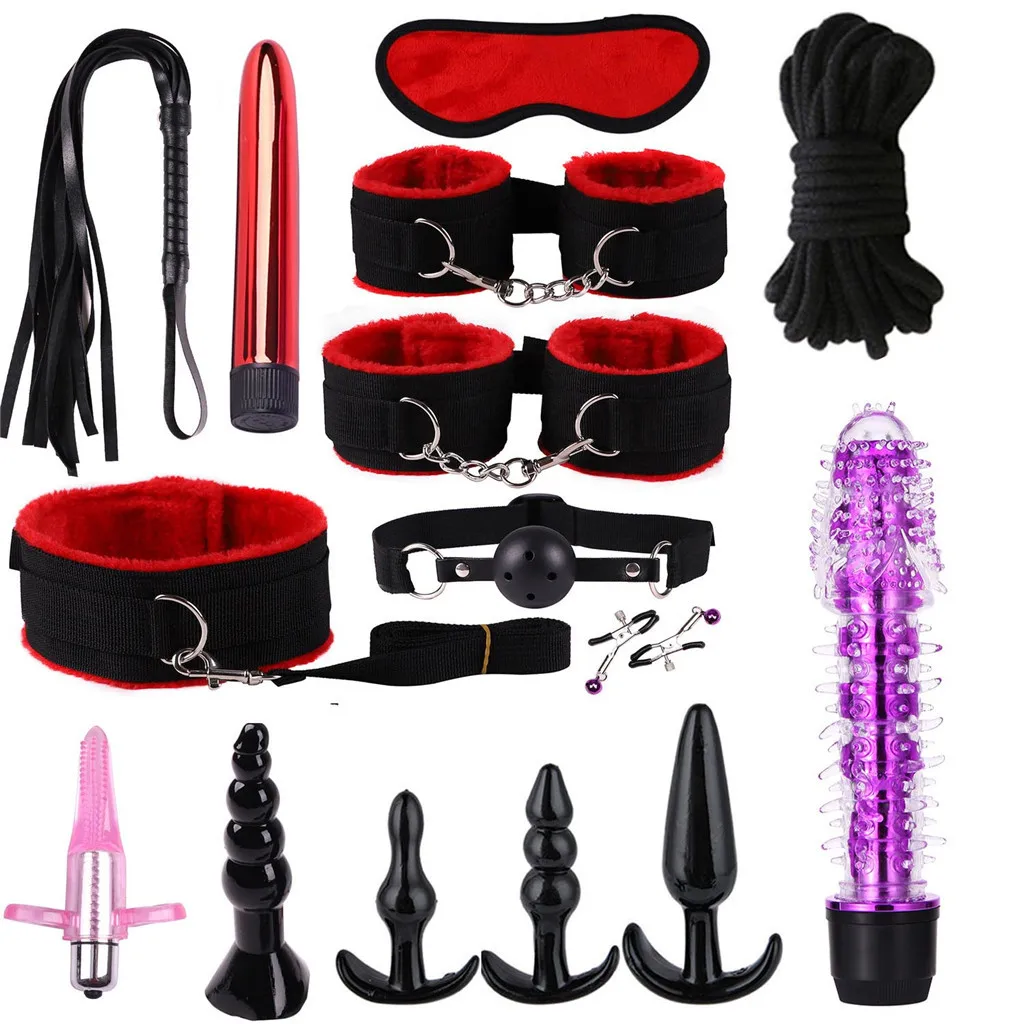Анальный заглушки секс набор игрушек кнут вибратор для сосков кольцо для массажа SM Набор 15 шт