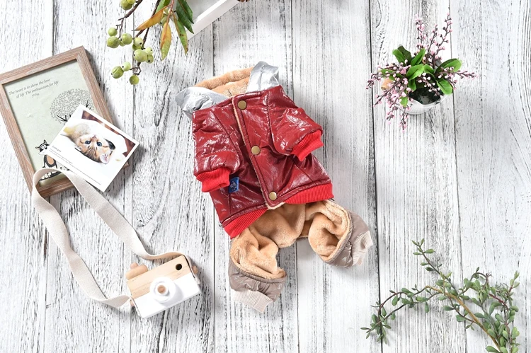 Мягкая кожаная куртка для собак, синий красный комбинезон для животных с мехом чихуахуа, йоркширский терьер, Прямая поставка, снежные ветрозащитные товары