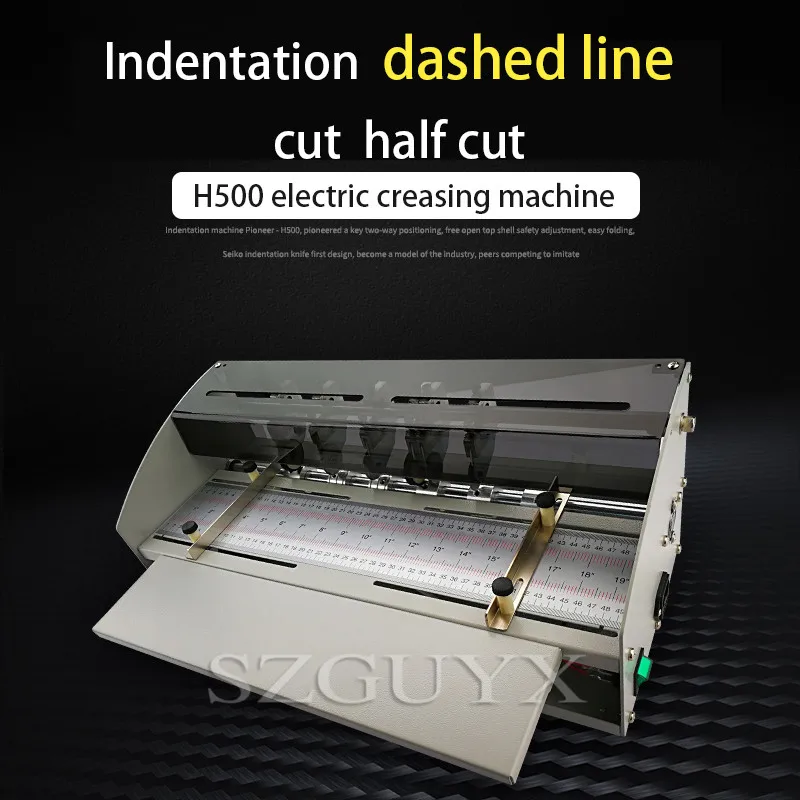 Бренд: guyx Название продукта: H500 электрическая машина для сгибания Режим работы: углубление, штриховая линия, резка, функция написания Толщина углубления: до 500 грамм бумаги Рабочая мощность: 220 В/50 Гц Машина скорость 10 м/мин Вес машины: 10 кг Размер вдавливания: длина до 460 мм на заказ Размер упаковки: 60*30*27 см