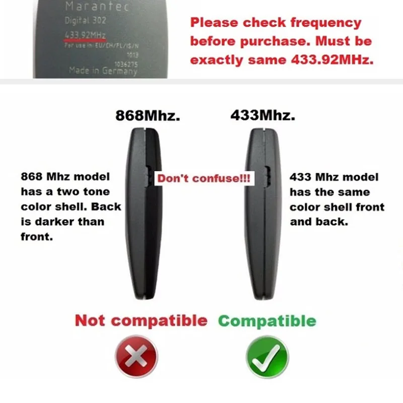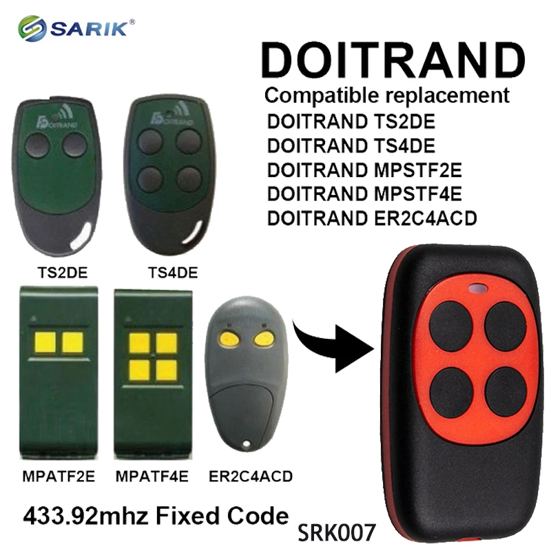 Пришел топ 432 SA Подошло TOP432EE, подошло TOP434EE Подошло Топ 432 A, подошло 434 A Топ 432 EV, Топ 434 EV Подошло Топ 432 м, подошло 434 м Топ KAM 432 NA, Топ 434 NA Топ 432 S, T 432, T 434 Пришел TAM 432 SA Avidsen 100400,104505, Avidsen 100550,400600, Avidsen 100951,100955, 100601 micromark MM23164 ADYX ALIZE EM2C ADYX ALIZE EM4C BENINCA TO. GO 2WK, TO. GO 4WK, BENINCA TO. GO 2WP, TO. GO 4WP, BENINCA T2WK, T4WK, BENINCA LOT1W, LOT2W, LOT4W, BENINCA LOT2WMS Карден S476-TX2 Карден S476-TX4 DITEC GOL4C Деа 433-1433-2433-4 DEA MIO TD2, MIO TD4 Деа GT2M, GT4M Деа GENIE DEA punto-2, punto-4 ERREKA луна-2/3 ERREKA RESON 1/2 FAAC TM 433DS-1 FAAC TM 433DS-2 FAAC TM 433DS-3 GROER H80 GROER TX22 Пульт marantec Digital 382 433384 433 Пульт marantec Digital D302 433, D304 433 Пульт marantec Digital D313 433 Пульт marantec Digital D321 433 Пульт marantec Digital D323 433 Marantec команда 131 433 Пульт marantec Digital 211 433212 433214 433 Пульт marantec Digital 221 433222 433224 433 Пульт marantec Digital 231 433232 433 PROTECO TX433 PTOTECO PTX433 405 SEAV BE SMART S2/S4 SEAV быть хорошим S3 SEAV BE-HAPPY-S1/S2/S3 SEAV TXS 1, TXS 2, TXS 3, TXS 4 TELCOMA EDGE2, EDGE4 Teloma Tango Blue 2, Tango Blue 4, Телкома Слим 2, Слим 4 Телетастер SKX1 MD/SKX2 MD/SKX3 MC/SKX4 MD Teletaster SKX1HD/SKX2HD/SKX4HD/SKX6HD Teletaster SKXWD1/SKXWD2/SKXWD4 Teletaster SKX1GS/SKX2GS/SKX3GS/SKX4GS V2-TPR1-43 Синий-433,92 МГц V2-TPR2-43 Синий-433,92 МГц V2-TPR1-43 розовый-433,92 МГц V2-TRR1-433,92 МГц V2-TRR2-433,92 МГц V2-TRR4-433,92 МГц V2-TRR2 фиолетовый-433,92 МГц V2-TRR4 фиолетовый-433,92 МГц Совместим со всеми пультами дистанционного управления с фиксированным кодом 433,92 МГц.
