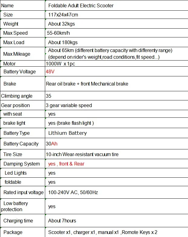 10 "внедорожный Электрический скутер для взрослых 48V 1000W 30AH