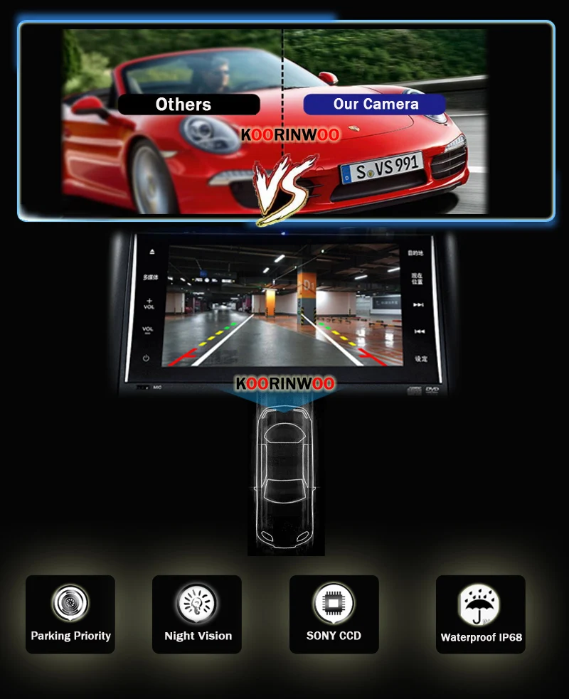 Универсальная водонепроницаемая CCD HD Автомобильная камера заднего вида с черным покрытием белого и серебристого цвета Бренд: KООRinwООДатчик изображения CCD