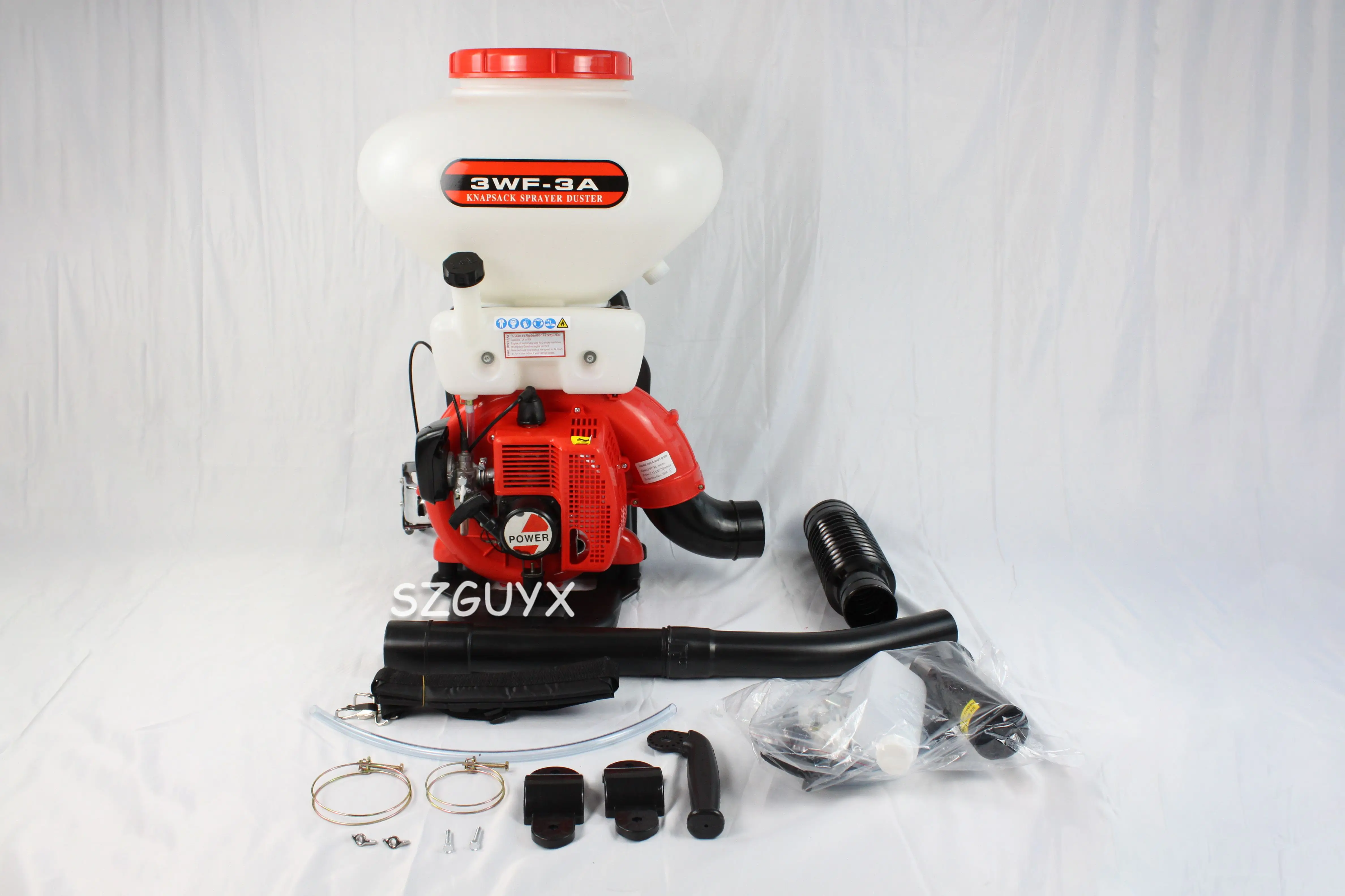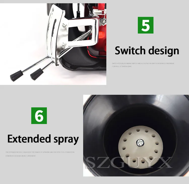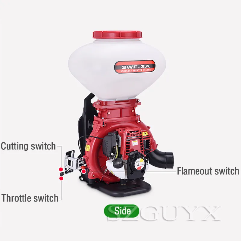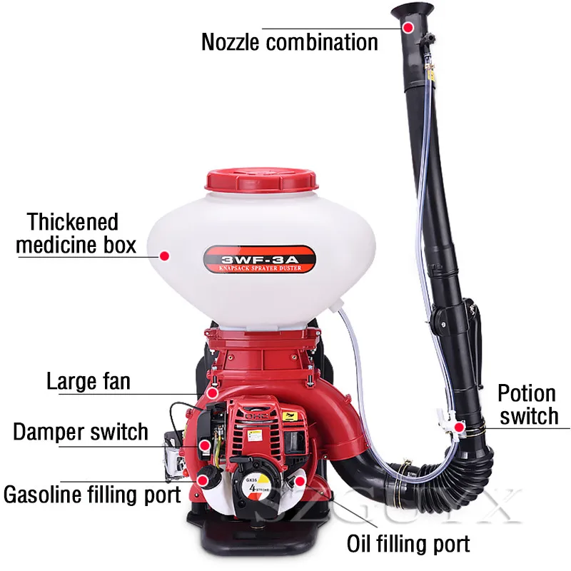 Параметры продукта Бренд: GUYX Категория продукта: ранец с четырьмя смывными порошками многофункциональная машина Мощность: 3.0HP Емкость коробки для лекарств: 26 л Метод зажигания: CDI Модель питания: четыре пуансона, два пуансона Расстояние распыления: 8-12 м Материал крыльчатки: алюминиевый сплав Характеристики продукта: подходит для различных культур, фруктовых деревьев, борьбы с вредителями