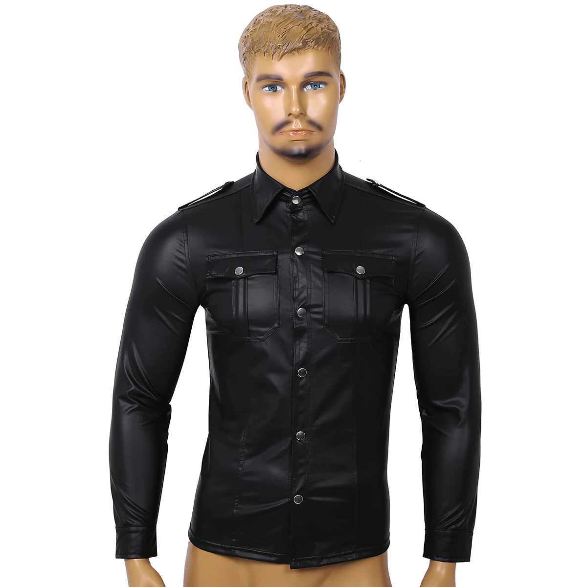 Мужские модные рубашки из лакированной кожи на пуговицах в стиле ночного клуба, облегающий дизайн, идеально подчеркивает ваше тело.
