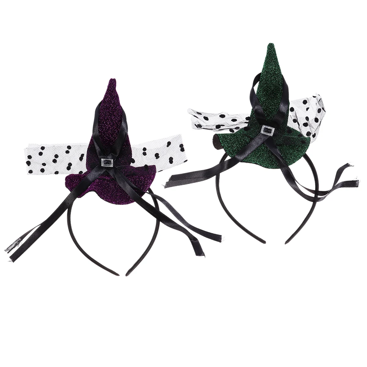 Хэллоуин горошек сетки ведьма форма шляпы женская головная повязка розовый и зеленый цвет