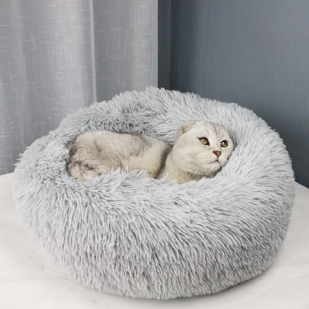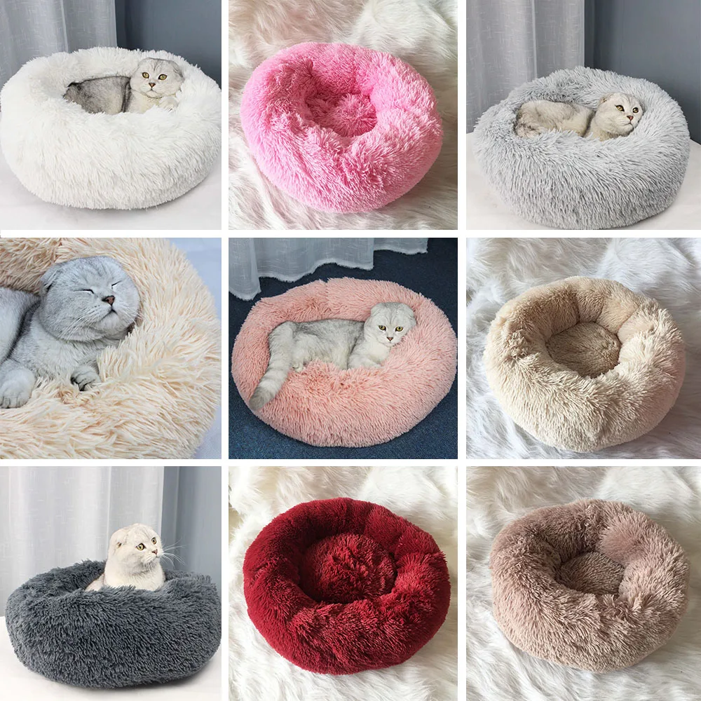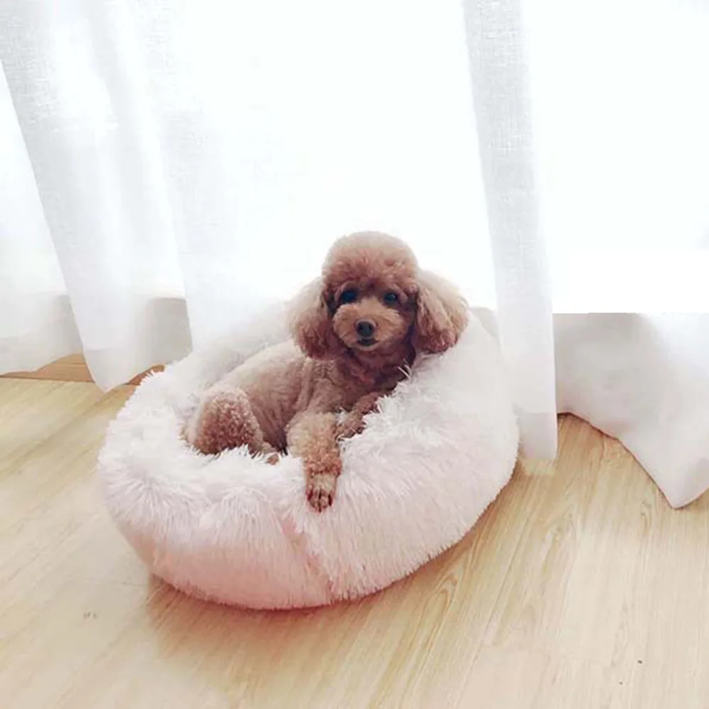 Теплая Флисовая кровать для собак, 4 размера, Круглый лежак для домашних животных, подушка для средних и больших собак и кошек, зимний питомник для собак, коврик для щенков, кровать для домашних животных