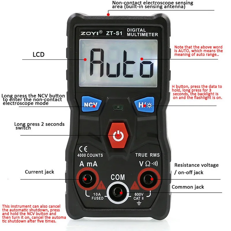 <Широко используется: точно измеряет ток постоянного/переменного тока, напряжение, сопротивление, температуру, емкость, диод, нулевой/огневой провод, частоту и так далее.