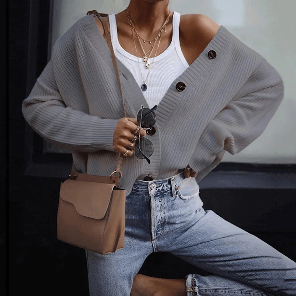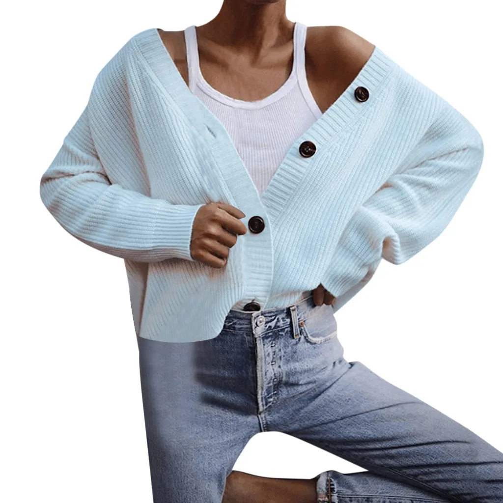 Женский трикотажный кардиган с длинными рукавами и пуговицами спереди, верхняя одежда