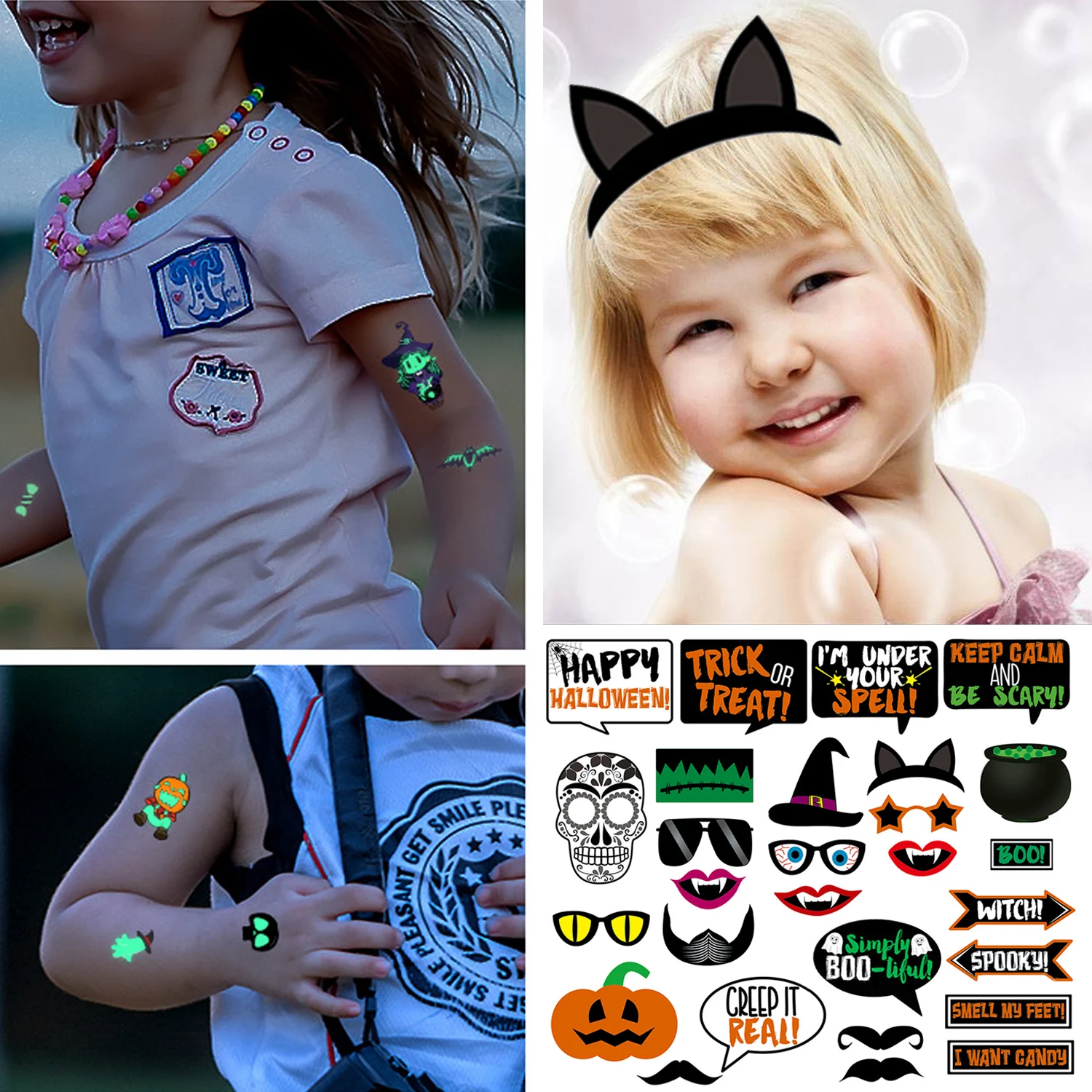 Behogar 28 шт Хэллоуин фото стенд реквизит с 10 листами светящиеся временные татуировки наклейки для Хэллоуина товары для фотографии