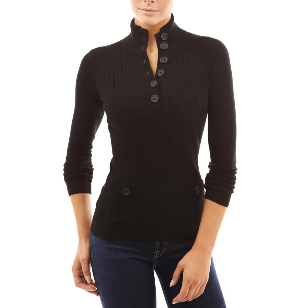 Пол: Для женщинТип застёжки: кнопкаДлина рукава (см): полнаяТолщина: СтандартныйСтиль: ПовседневноеТип изделия: пуловерыНомер модели: Повседневный свитерВоротник: Высокий воротникКостюмы Длина: ОбычныйРукав Стиль: ОбычныйРисунок: СплошнойМатериал: спандекс, хлопокМатериал Состав: хлопокУкрашение: на пуговицах и с карманамиТехника: компьютерный трикотажСтиль: МодаЭластичность: очень эластичные