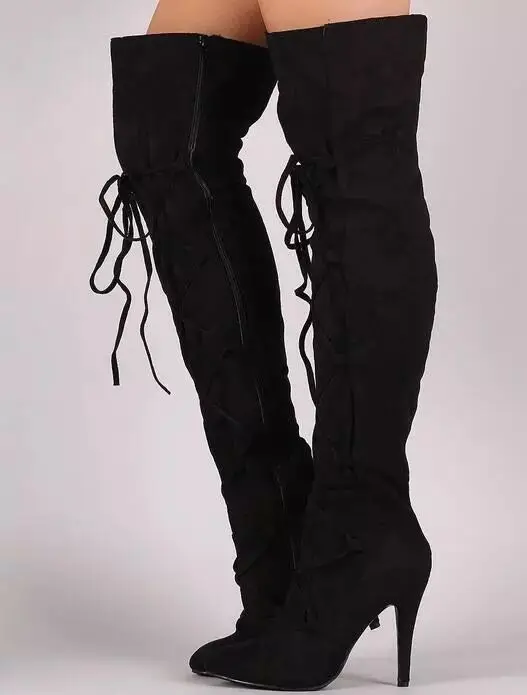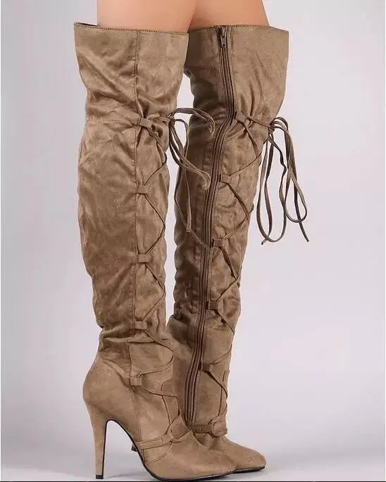 Женские Удобные Сапоги выше колена на платформе молнии с массивным каблуком |