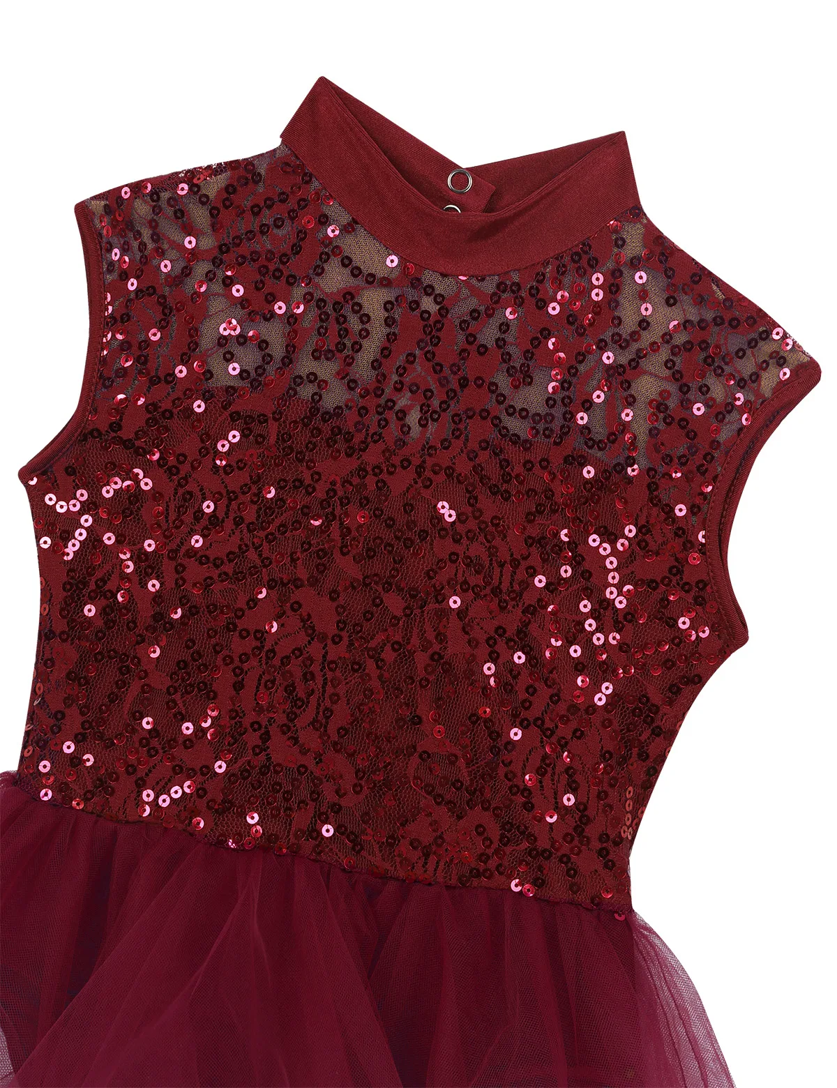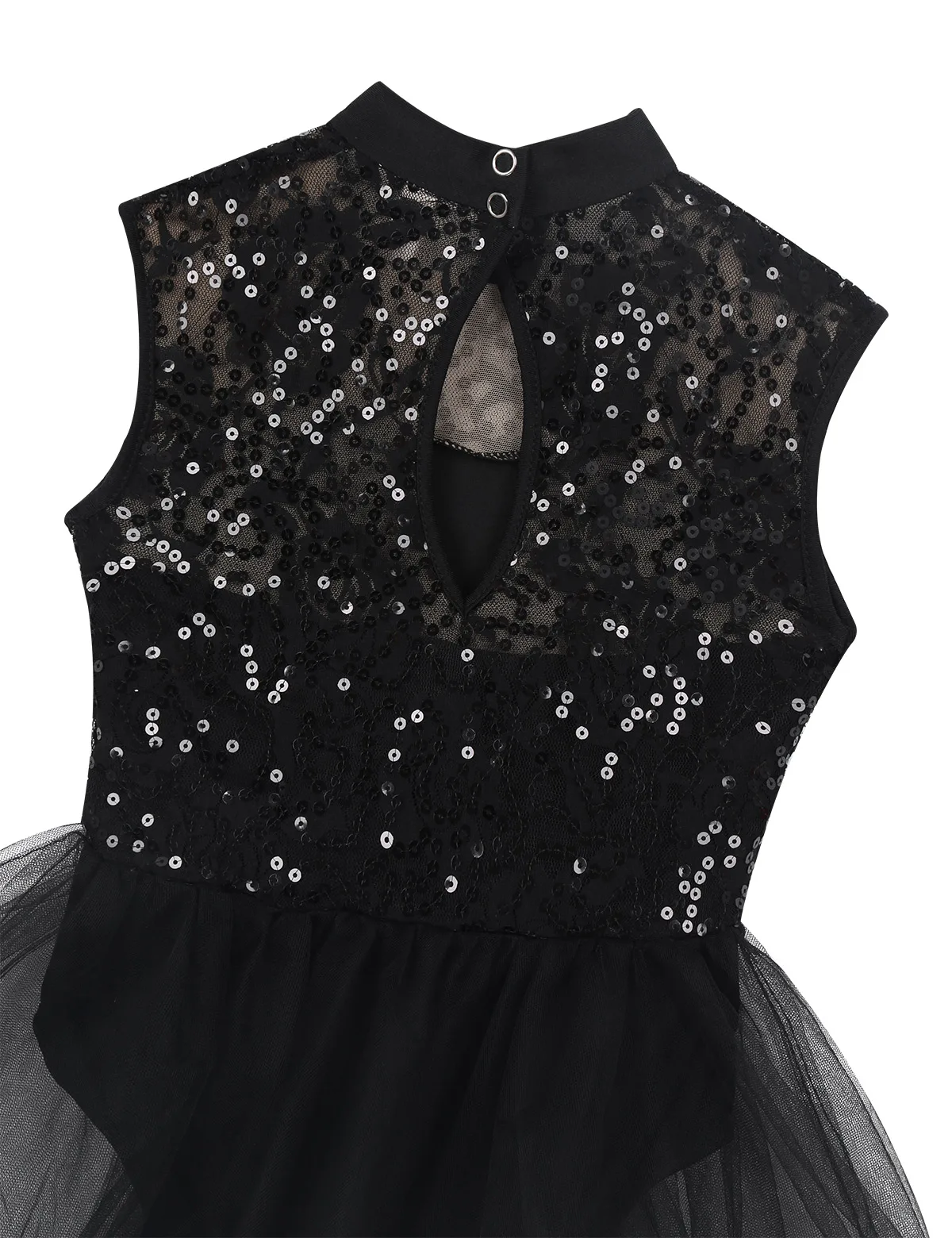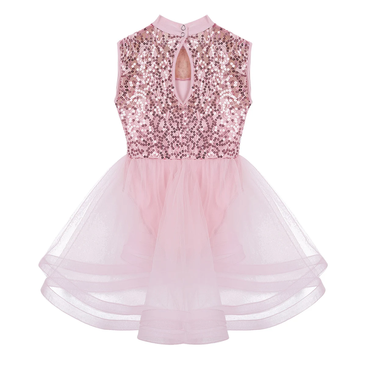 Платье для катания на коньках выполнено из полиэстера, пайеток и сетчатого материала, ручная стирка.