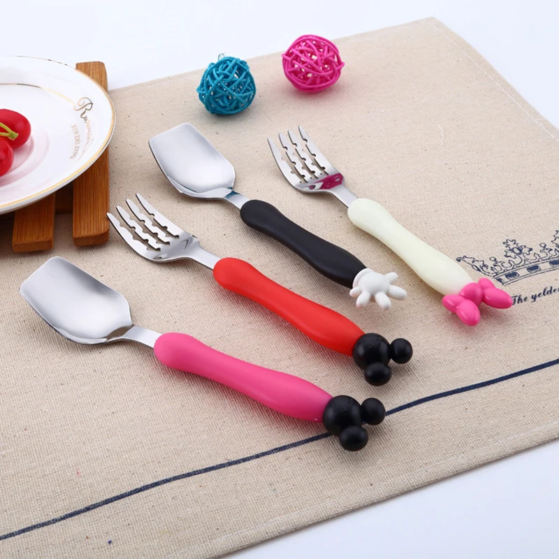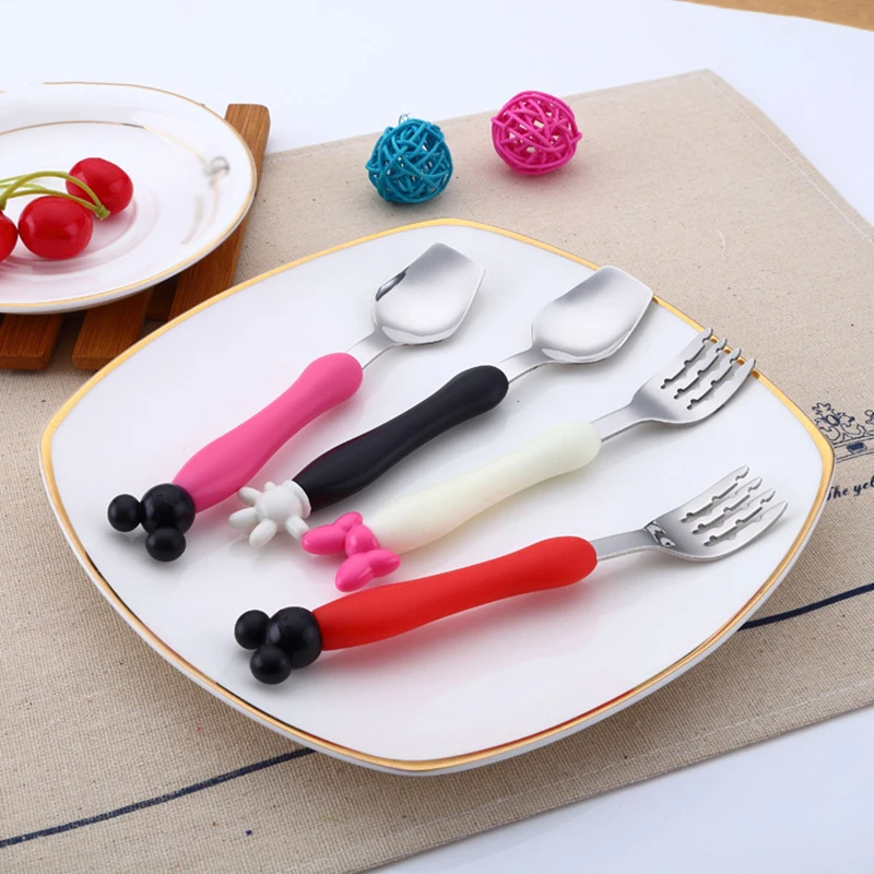 2 шт./компл. высокое качество Микки и Минни Маус вилка Нержавеющая сталь Чай Кофе набор чайных ложек для детей Детский обеденный посуда инструменты