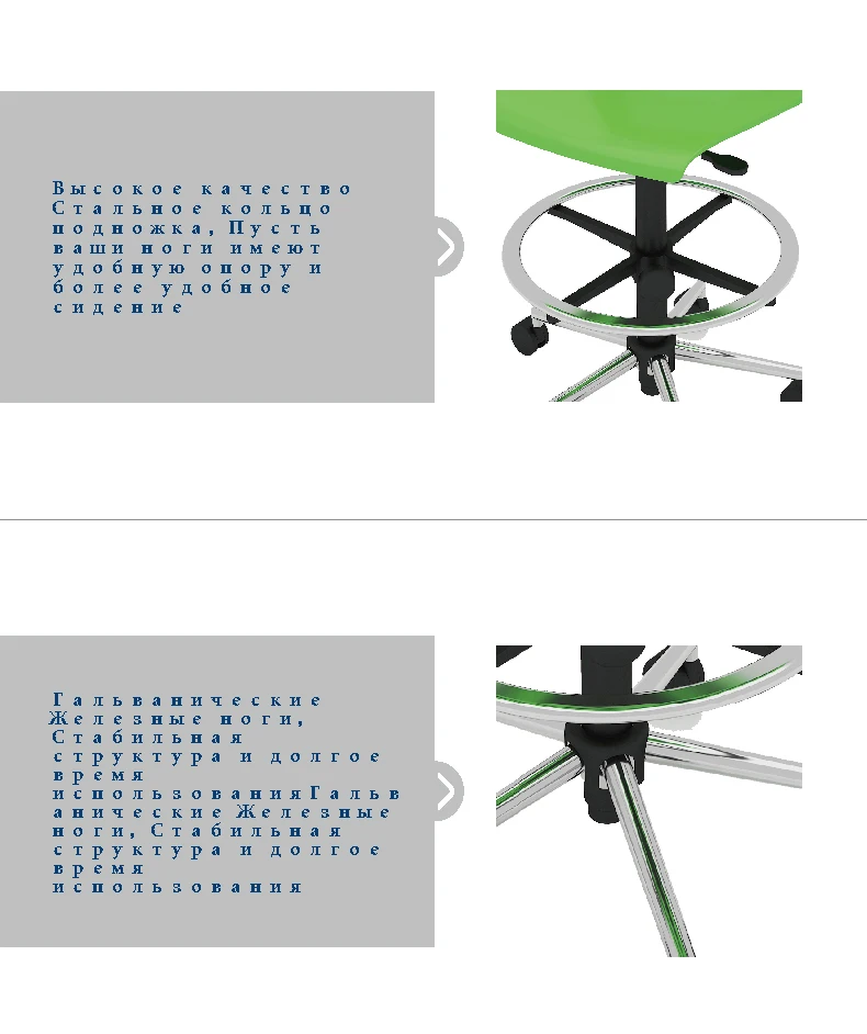 Белый зеленый оранжевый- три цвета PP+GF интеграционная пластическая рама Вращающаяся круглая подножка Гальваническая стальная 5-звездные ножки Опция - подушка Размер: 475*545*910mm Вес брутто: 10.3kg