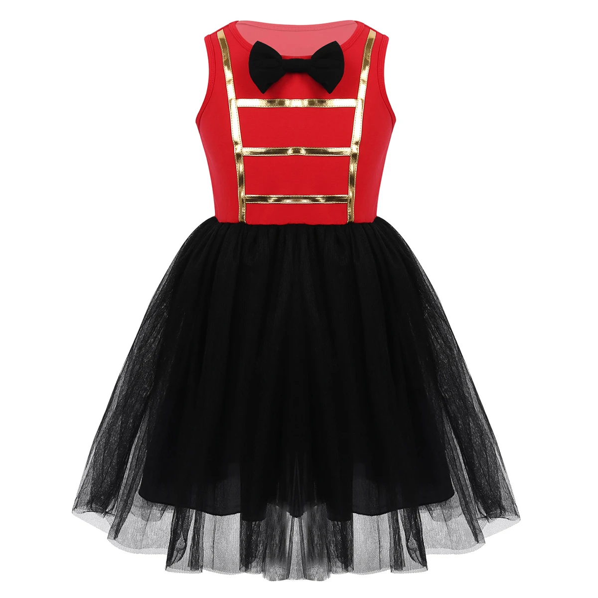 Без рукавов, круглый вырез с бантом спереди. Лиф Из Хлопка украшен золотыми вставками.