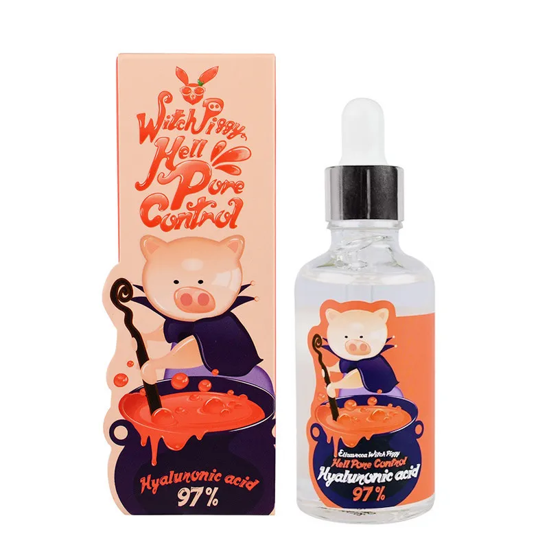 Features : A substantial base ampoule to fill the skin with moisture K-Beauty Hell Pore Control Hyaluronic Acid 97% Step Name Skin molded to paint Witch piggy secrets for soft and resilient skin Put the step description here. Powerful moisturizer Whitening-Wrinkles functionality Size:50ML Put the step description here. How to Use : After rub lightly with 2 drops of liquid, please let it be absorbed by hitting
