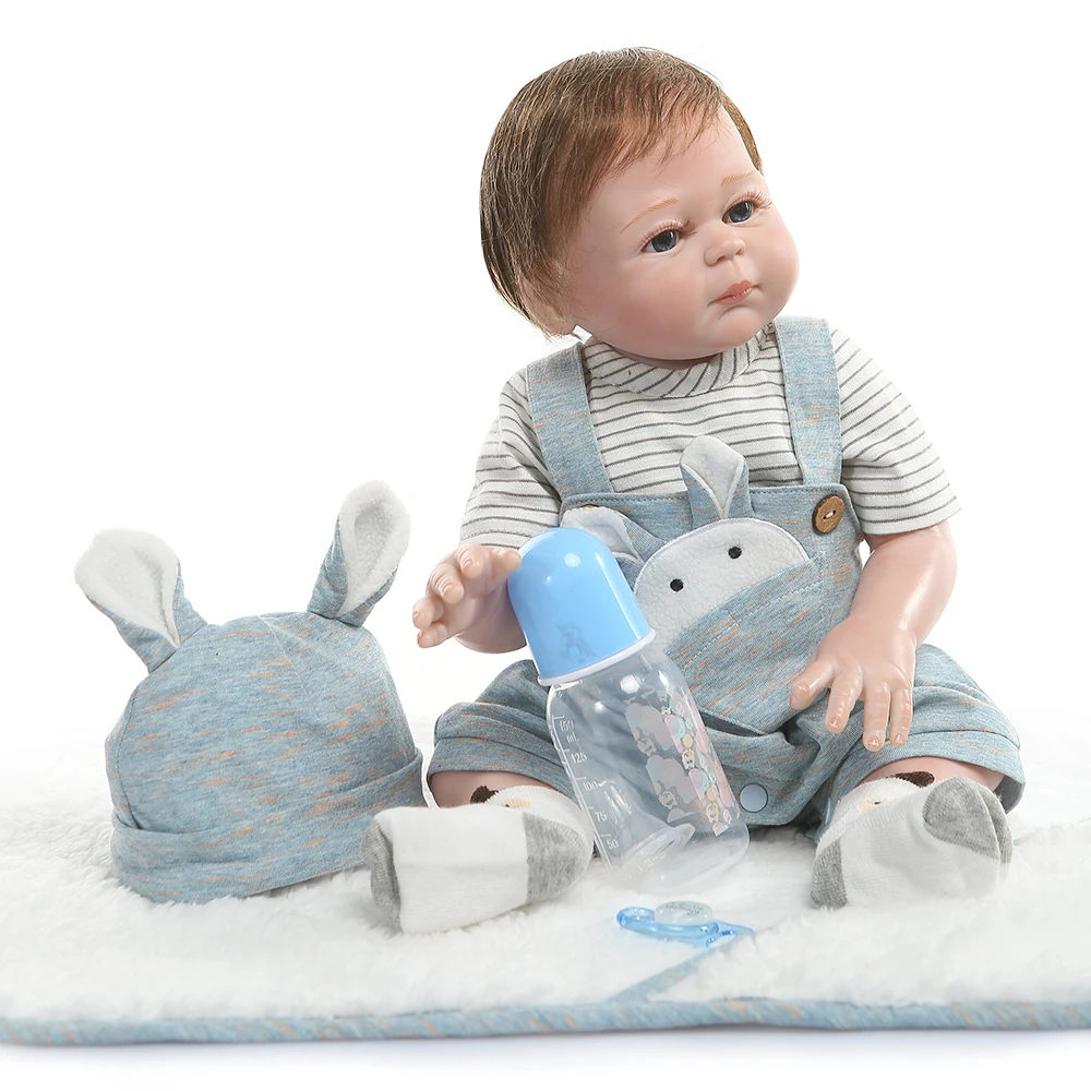 Эта кукла с полным силиконовым виниловым корпусом, в настоящей детской одежде, 19 дюймов от головы до ног, как настоящий ребенок. И он может войти в воду, чтобы сопровождать ребенка, чтобы принять душ. Идеальные детские игрушки, подарки на Рождество и день рождения, Коллекционирование кукол.